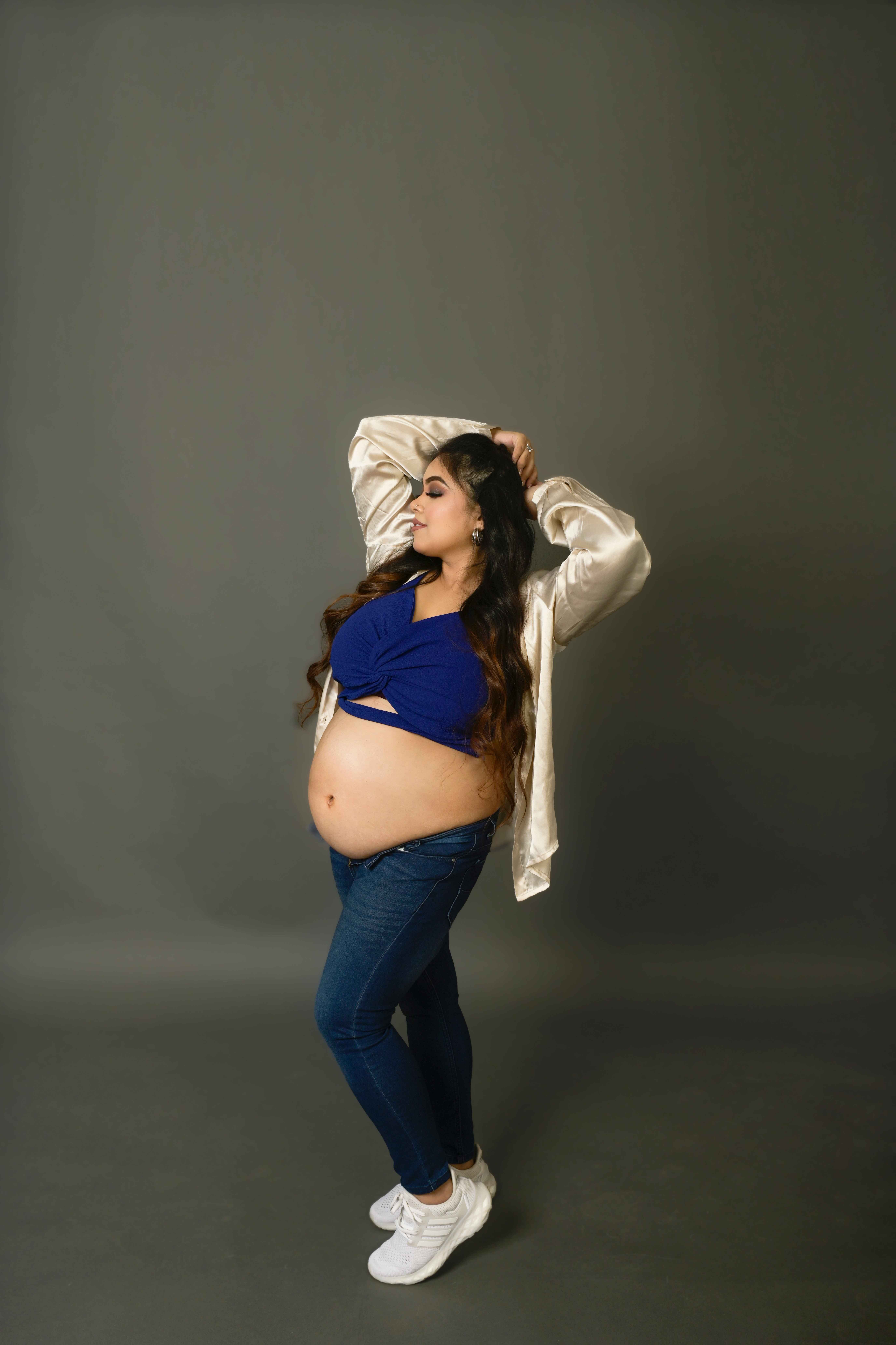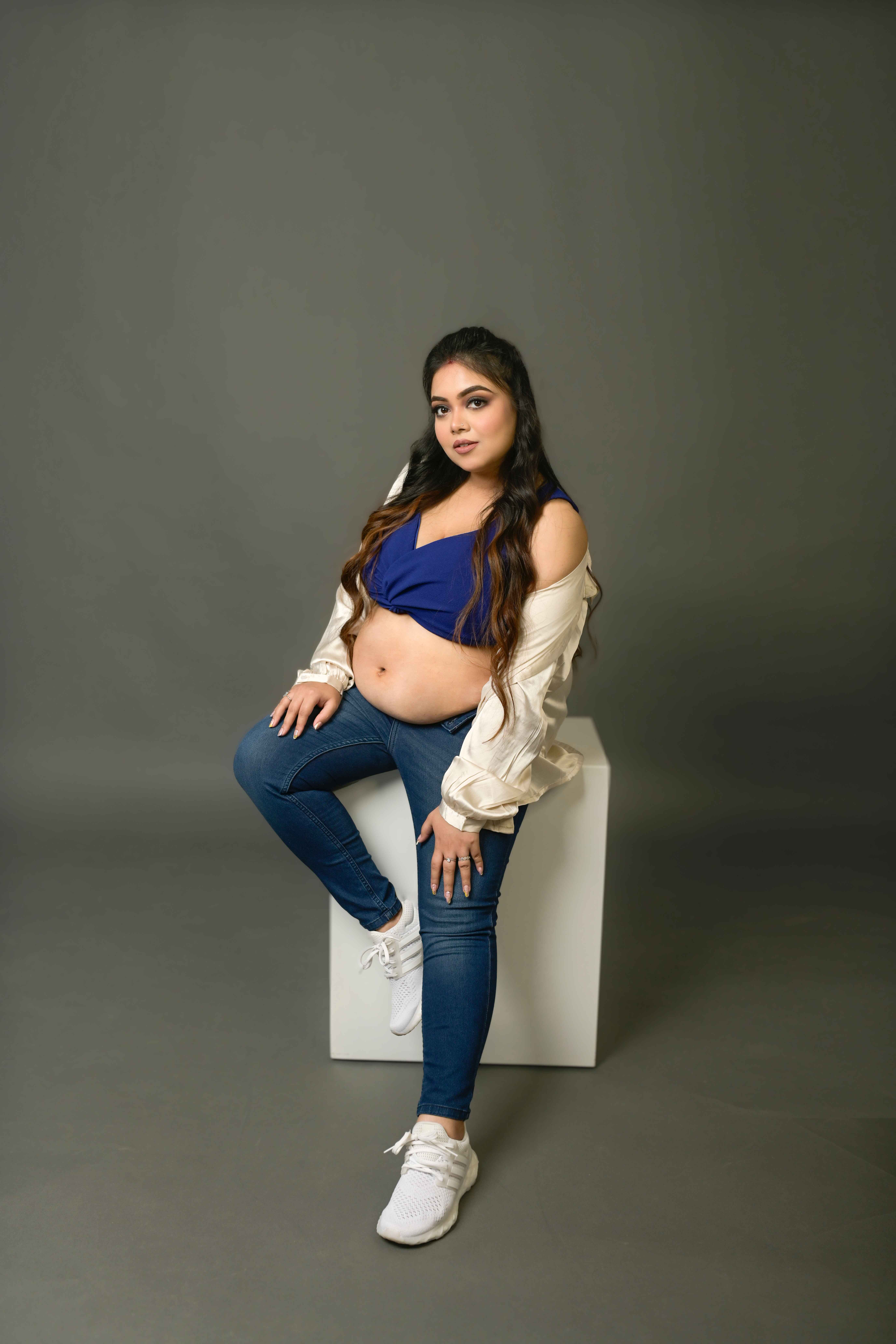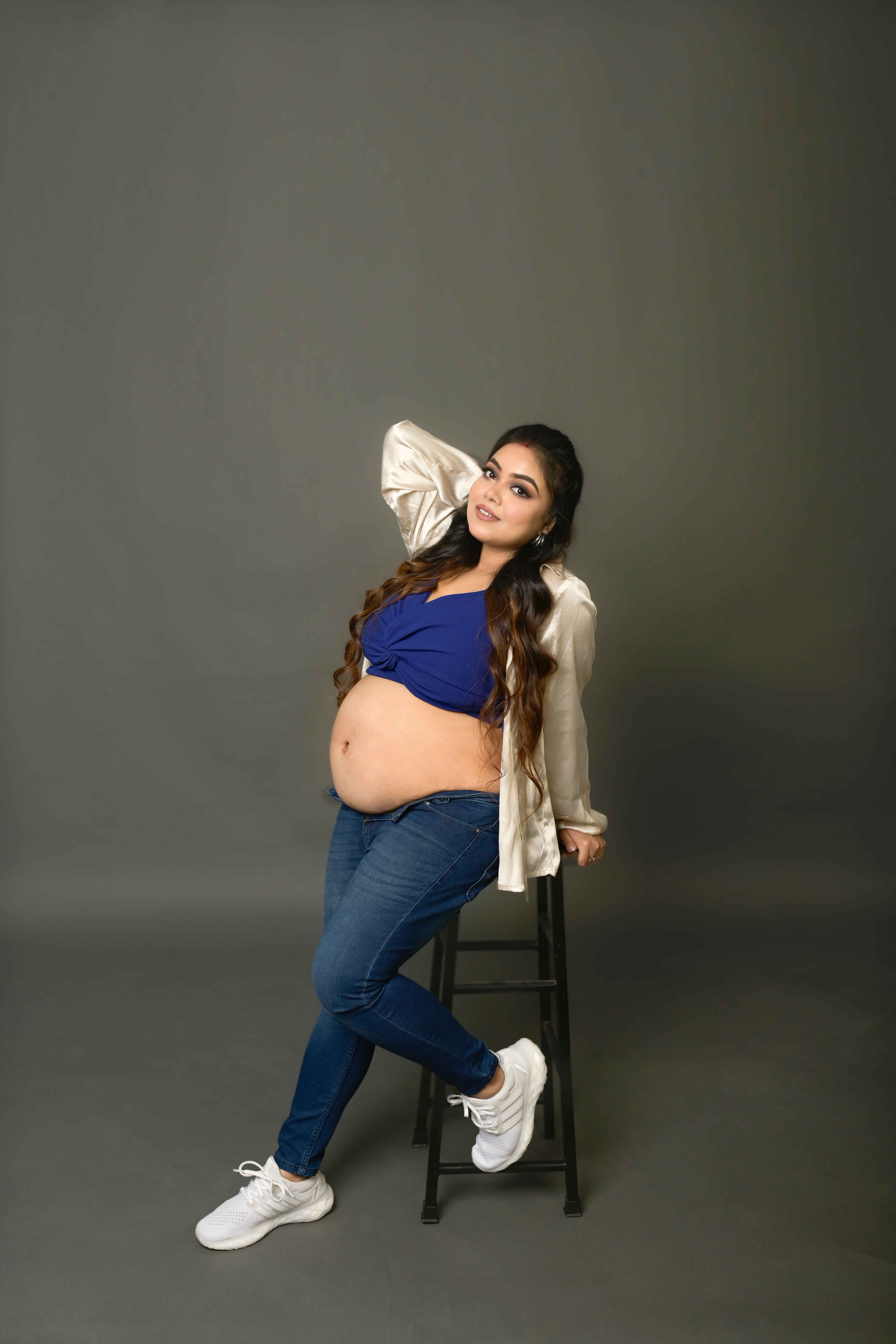 Fashion maternity photography showcases the expectant mother's style and elegance. These sessions feature professional lighting and fashionable attire, creating glamorous portraits that highlight the beauty and sophistication of pregnancy.